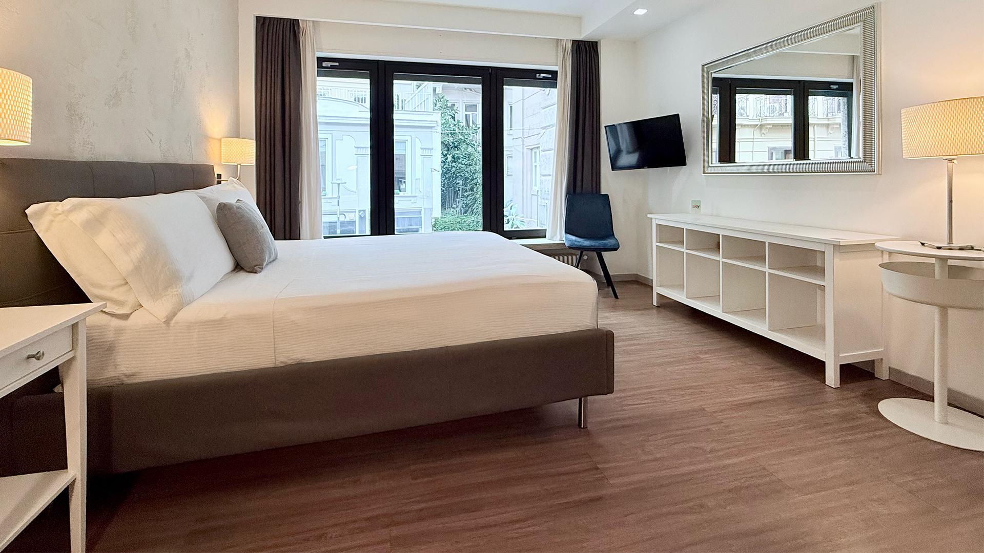 The spacious 36 square meter Superior room offers a welcoming and versatile environment, ideal for both couples and small families. Featuring a modern and comfortable design, the room is furnished with an elegant double bed and a single bed, providing flexible solutions for guests.